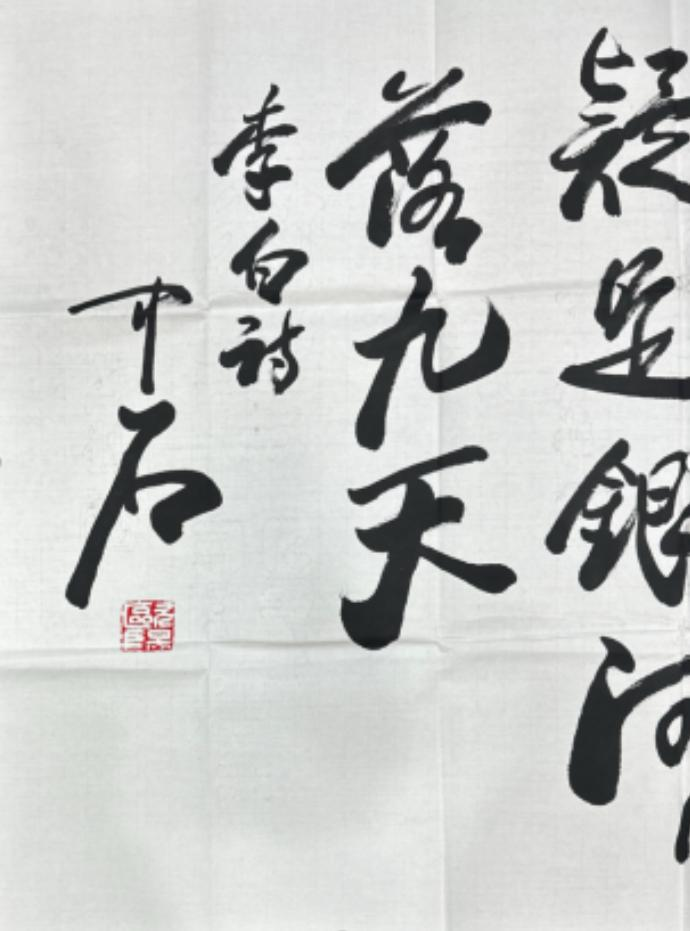 題款“李白詩 中石”及紅色印章的點綴,不僅明確了作品的內容、作者信息,還為畫面增添了文化韻味與形式美感。